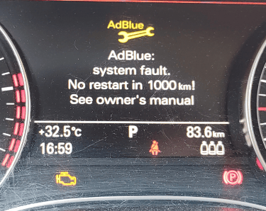 Järjestelmän diagnostiikka: Ajoneuvon tietokone -järjestelmä voi antaa vikakoodeja, jotka viittaavat ongelmiin AdBlue/SCR-järjestelmässä. Nämä viat on diagnosoitava ja korjattava ammattimaisesti.